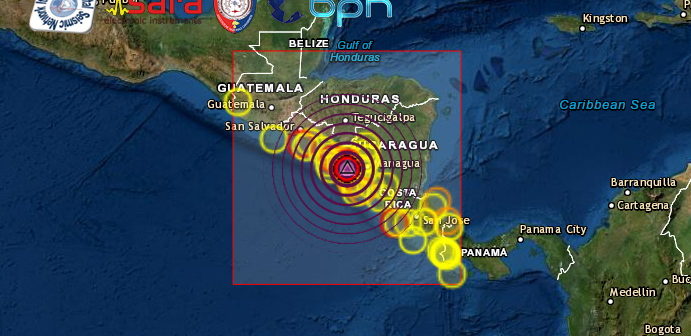 Una forte scossa di terremoto di Mw 6.1 è stata registrata dall’USGS alle 17:25:07 ora italiana in Nicaragua, con ipocentro a circa 21 km di profondità.