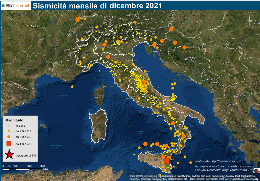 INGV: ecco le mappe mensili della sismicità di dicembre 2021