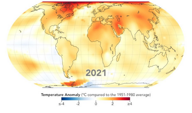 Il 2021 si è confermato come il sesto anno più caldo mai registrato. 9 dei 10 anni record più caldi si sono verificati nell’ultimo decennio.