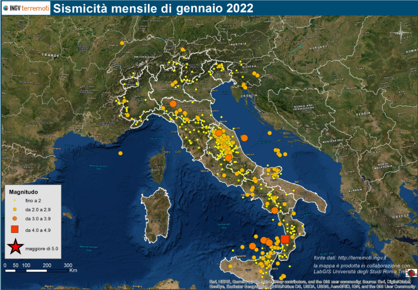 INGV: le mappe mensili della sismicità di gennaio 2022