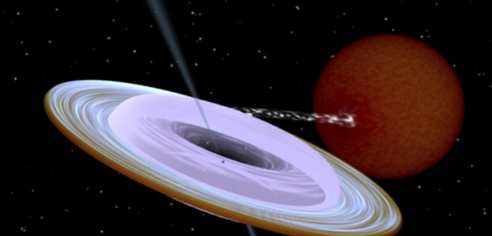 Quando due oggetti ruotano in coppia l’uno intorno all’altro (tenuti insieme dall’attrazione gravitazionale), i loro assi di rotazione tendono ad essere allineati e perpendicolari al piano orbitale. In questo caso la coppia danzante è formata da una stella e da un buco nero in fase di accrescimento, che cioè si trova abbastanza vicino alla sua compagna da rubarle materia. I ricercatori, guidati da Juri Poutanen, hanno effettuato osservazioni ai raggi-x del sistema binario MAXI J1820+70, che gli hanno permesso di identificare l’orientamento del disco di accrescimento che circonda il buco nero.