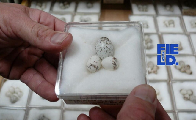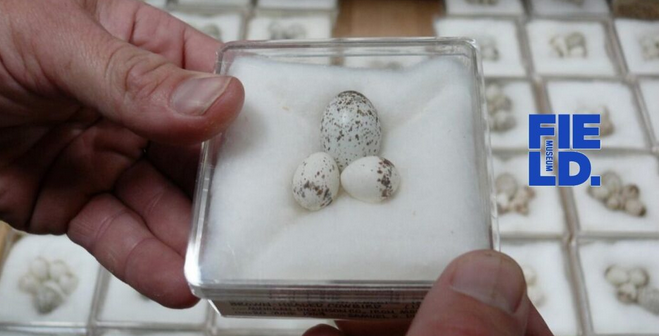 La collezione di uova del Field Museum occupa una piccola stanza piena zeppa di armadi che arrivano dal pavimento al soffitto, ciascuno dei quali contiene centinaia di uova, la maggior parte delle quali sono state raccolte un secolo fa. Le stesse uova (o meglio, solo i loro gusci puliti e asciutti, con il contenuto aspirato via cento anni fa) sono conservate in piccole scatole e accompagnate da etichette, spesso scritte a mano, che indicano a che tipo di uccello appartengono, da dove vengono e quando sono state raccolte precisamente, fino a quelle raccolte ai giorni nostri.