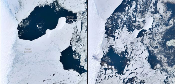 Una piattaforma di ghiaccio grande quanto Roma è collassata nell’Antartide orientale: chiamata Conger, appare come un puzzle che si scompone in mille pezzi nelle immagini catturate prima e dopo la rottura dal satellite europeo Sentinel-2 del programma Copernicus, di Agenzia spaziale europea (Esa) e Commissione europea.
