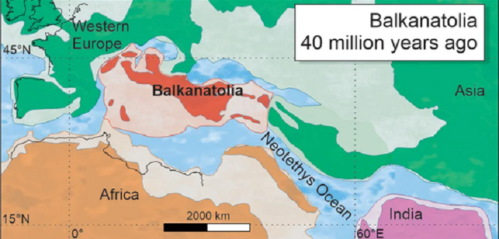 Solleva dubbi e perplessità da parte del mondo scientifico l’ipotesi secondo cui un continente perduto, esistito circa 40 milioni di anni fa e chiamato Balkanatolia, avrebbe fatto da ponte tra Asia ed Europa sud-occidentale quando i livelli del mare si erano abbassati, permettendo a diversi mammiferi esotici di migrare da un’area all’altra.
