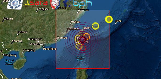 Una forte scossa di terremoto di Mw 6.7 è stata registrata dall’USGS alle 18:41:39 ora italiana all’isola di Taiwan con ipocentro a circa 24 km di profondità