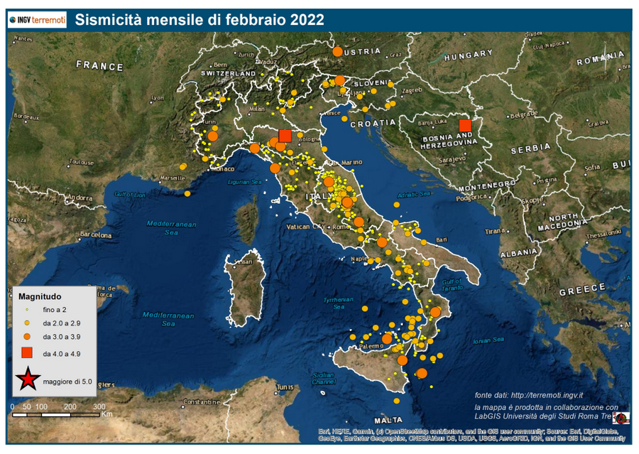 INGV: le mappe mensili della sismicità di febbraio 2022