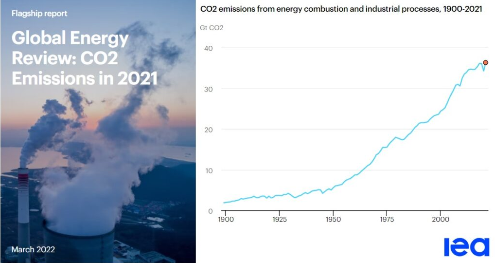 Secondo la “Global Energy Review: CO2 Emissions in 2021” pubblicata dall’International energy agency (Iea) e che fa parte della più vasta “Global Energy Review”, « Dato che l’economia mondiale è rimbalzata fortemente dalla crisi del Covid-19 e ha fatto molto affidamento sul carbone per alimentare tale crescita, nel 2021 le emissioni globali di anidride carbonica legate all’energia sono aumentate del 6%, a 36,3 miliardi di tonnellate, il livello più alto mai raggiunto».