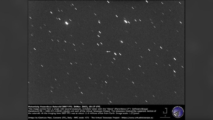 Il primo aprile si avvicina con un asteroide ‘potenzialmente pericoloso’: noto con la sigla 2007 FF1 è grande 110 metri per 260 e ‘sfiorerà’ la Terra passando a oltre 7 milioni di chilometri, in completa sicurezza e a circa 20 volte la distanza che ci separa dalla Luna.