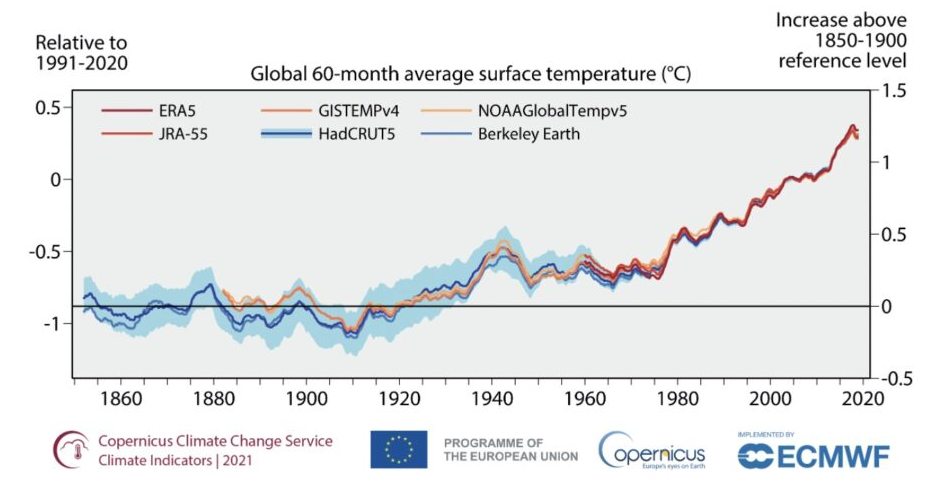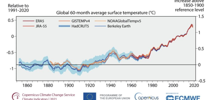 Il report ha confermato che, «A livello globale, gli ultimi 7 anni sono stati i più caldi mai registrati. Tra questi, il 2021 è stato tra i più freddi, e la temperatura superficiale marina media a livello globale per il 2021 è stata la sesta o settima più elevata dal 1850. Tuttavia, si osserva un evidente aumento delle temperature dell’aria superficiale globale, pari a 1.1 e 1.2° C rispetto ai livelli preindustriali, sia sulla terraferma che sulla superficie del mare».