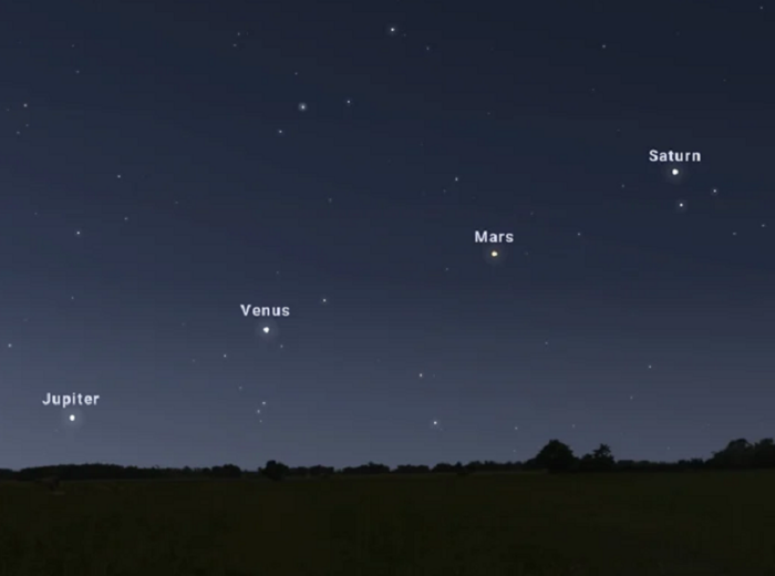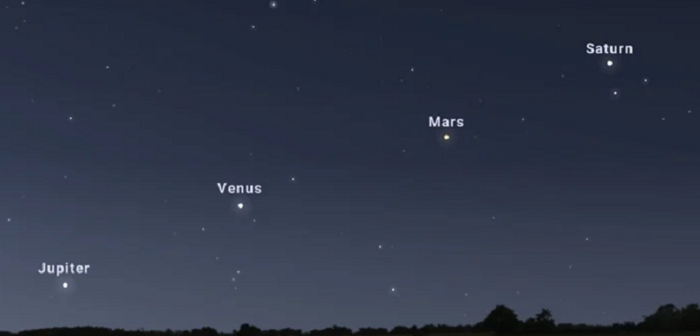 Il cielo dà spettacolo all’alba in questi giorni, con l’allineamento di Giove, Venere, Marte e Saturno, che tracciano una diagonale nel cielo o prima del sorgere del Sole.