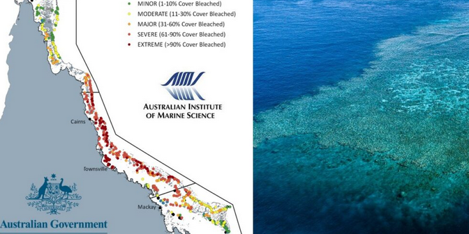L’aumento delle segnalazioni di sbiancamento dei coralli ha spinto la Park Authority della GBR ad effettuare indagini aeree in tutta la Grande barriera corallina nella seconda metà di marzo 2022 per valutare l’entità dello sbiancamento dei coralli. Durante le indagini aeree che sono state condotte da osservatori addestrati dalla Great Barrier Reef Marine Park Authority e dall’Australian Institute of Marine Science, sono state analizzati 719 reef tra lo Stretto di Torres e il Capricorn Bunker Group nel Great Barrier Reef Marine Park e «Di questi, 654 reef (91%) hanno mostrato uno sbiancamento. Lo sbiancamento dei coralli osservato dall’aria era in gran parte coerente con la distribuzione spaziale dell’accumulo di stress da calore, con una percentuale maggiore di copertura corallina sbiancata sulle barriere coralline che sono state esposte al più alto stress da calore accumulato quest’estate».