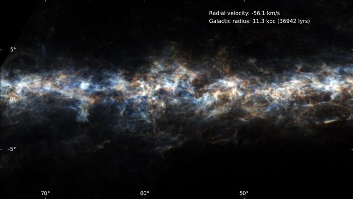 Byrd Green Bank negli Usa) riguardano l’emissione dell’idrogeno atomico nelle onde radio. Queste osservazioni “contengono informazioni sulla distribuzione del gas nel cielo e sulla sua velocità nella direzione di osservazione, che combinate con un modello di rotazione della Via Lattea, indicano quanto sono lontane le nubi che emettono il segnale”, spiega Sergio Molinari dell’Inaf di Roma, tra i responsabili scientifici di ECOGal.
