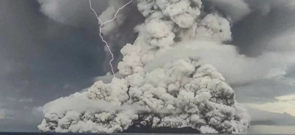 L’eruzione è considerata la più forte del XXI secolo, almeno finora; le sue nubi di cenere hanno persino raggiunto la stratosfera. Le particelle espulse hanno anche causato una tempesta di fulmini mai registrata prima. Le registrazioni dell’azienda finlandese di tecnologia ambientale Vaisala mostrano che qualche giorno prima e subito dopo l’eruzione sono stati registrati 590.000 lampi, a partire dal 13 gennaio e con un picco il 15 gennaio.