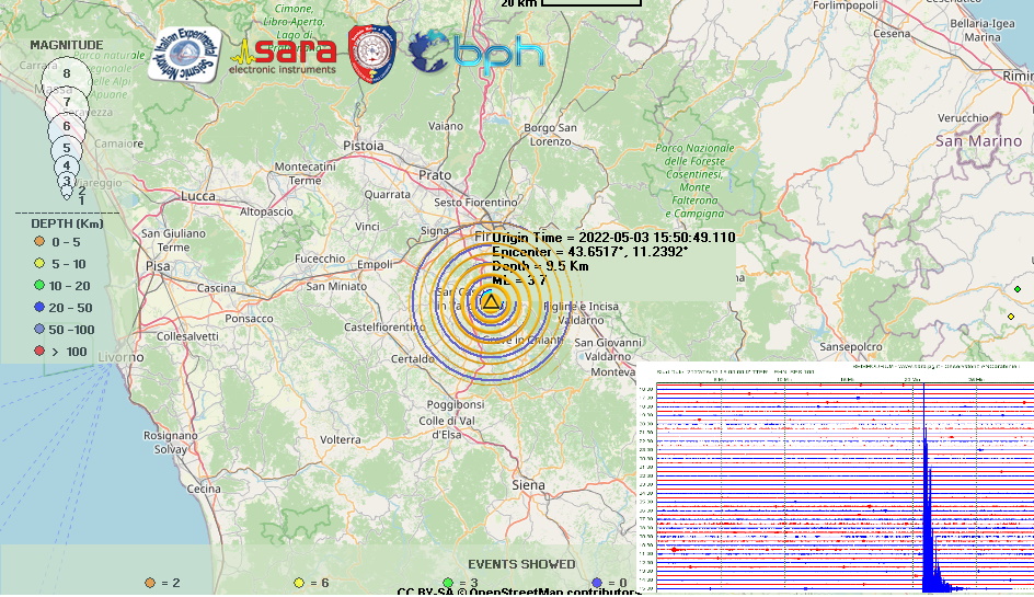 SCOSSA DI TERREMOTO DI Ml 3.7 IN PROVINCIA DI FIRENZE IN TOSCANA