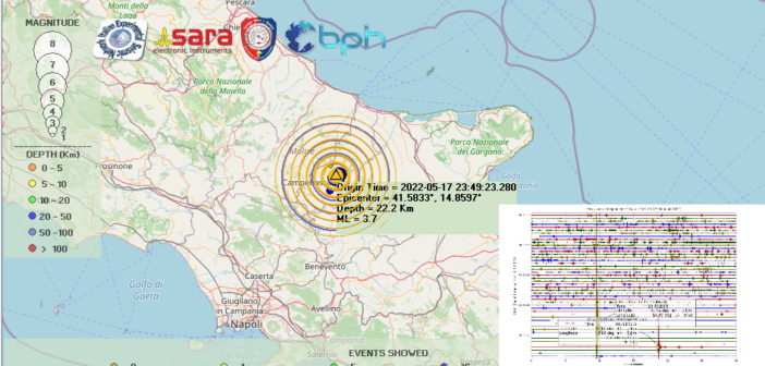 Una scossa di terremoto di Ml 3.7 è stata registrata alle ore 01:49:23 in provincia di Campobasso in Molise con ipocentro alla profondità di 22 km. I comuni più vicini all’epicentro sono stati