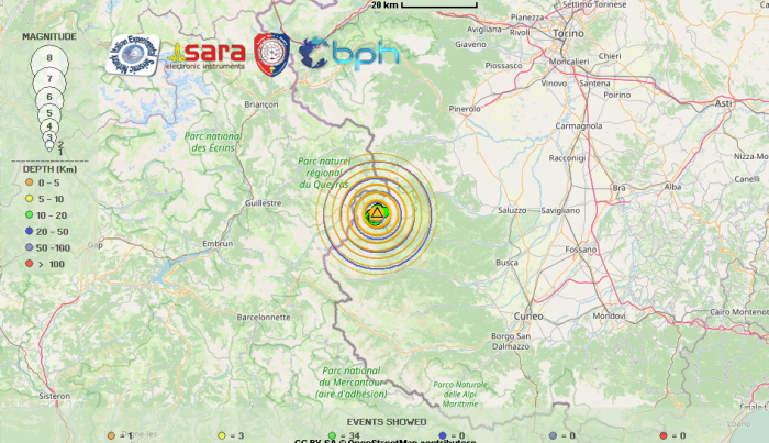 SERIE DI SCOSSE DI TERREMOTO NELLA ZONA DELLE ALPI COZIE IN PIEMONTE: DI Ml 3.4 LA PIU’ FORTE