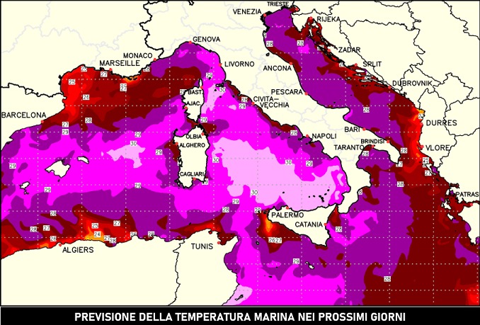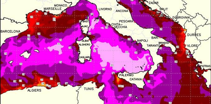 CALDO MARINO CON TEMPERATURE SUPERFICIALI DEI MARI ITALIANI FINO A 29-30 °C: LE POSSIBILI RIPERCUSSIONI SULL’AUTUNNO.