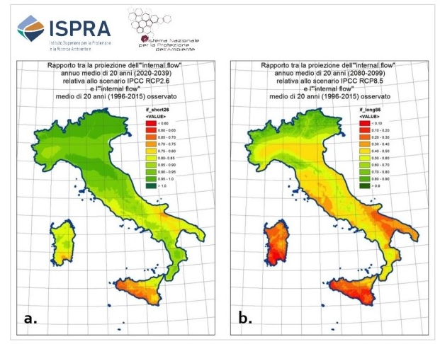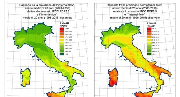 Basandosi sui dati disponibili, Ispra prevede a livello nazionale un’ulteriore riduzione della disponibilità di risorsa idrica «che va dal 10% nella proiezione a breve termine, nel caso di un approccio di mitigazione aggressivo nella riduzione delle emissioni di gas serra (coerentemente con lo scenario Ipcc Rcp2.6, che permetterebbe il rispetto dell’Accordo di Parigi sul clima, ndr) al 40% (con punte del 90% per il sud Italia) nella proiezione a lungo termine, ipotizzando che la crescita delle emissioni di gas serra mantenga i ritmi attuali(scenario Ipcc Rcp8.5, con emissioni “business as usual”, ndr)».