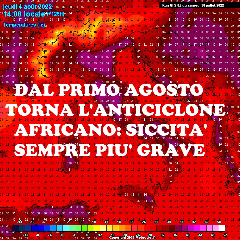 Le odierne proiezioni dei modelli previsionali indicano che il caldo intenso avvolgerà l’Italia per tutta la seconda parte della prossima settimana, e quindi almeno fino a domenica 7 agosto. Poi qualcosa cambierà, ma non dappertutto. E’ probabile infatti che con gli inizi della settimana successiva l’alta pressione lasci parzialmente sguarnito il Nord Italia, dove le infiltrazioni di aria relativamente più fresca e instabile dovrebbero favorire la formazione di un po’ di temporali e consentire un’attenuazione del gran caldo. In gran parte del Centro e al Sud invece le proiezioni non vedono alcun sostanziale cambiamento, con il caldo africano che dovrebbe insistere almeno fino al 10-11 agosto, ma non si può escludere che si allunghi anche di più. Insomma, in molte zone d’Italia la nuova ondata di caldo oltre che intensa potrebbe risultare anche assai insistente.