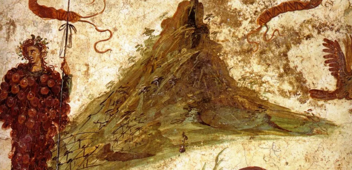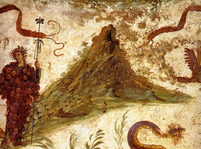 Il vulcano, a questo punto, doveva avere l’aspetto di un modesto rilievo che in modo quasi anonimo si innalzava sulla piana circostante. In epoca imperiale i rilievi del Vesuvio erano stati nuovamente ricoperti da una fitta vegetazione che ne mascherava ulteriormente la forma (Fig. 4). Il suo fertile suolo venne utilizzato principalmente per la coltivazione della vite, tanto che Marziale nei suoi Epigrammi lo descrive come “… verdeggiante di folti vigneti, pregno di vini in nobili vitigni…”.