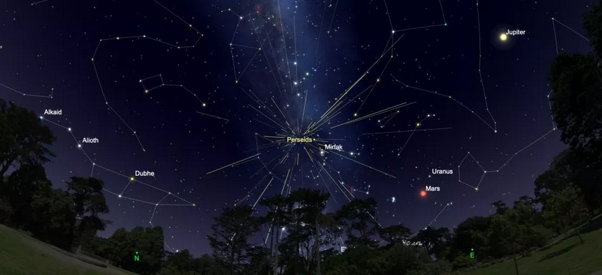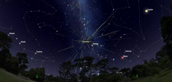 In questi giorni la Terra è investita come ogni anno dallo sciame meteorico delle Perseidi, dovuto all’attraversamento della nube di detriti della cometa Swift-Tuttle. Le notti di picco dello sciame delle Perseidi sono in genere quella a cavallo fra l’11 e il 12 agosto e quella successiva, fra il 12 e il 13 agosto (quindi un po’ in ritardo rispetto alla festa di San Lorenzo).