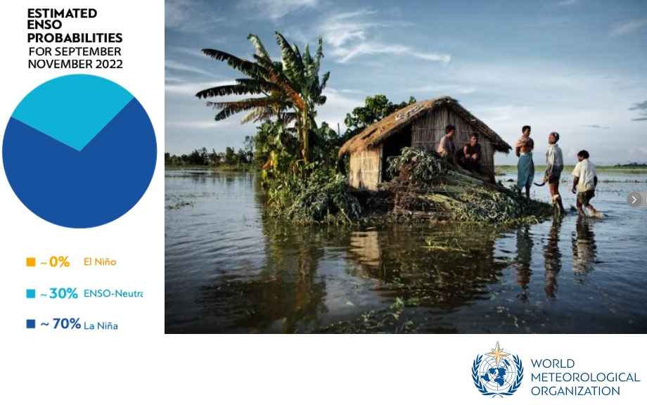 La Wmo sottolinea che «Le condizioni di La Niña nel Pacifico tropicale si sono rafforzate con l’intensificarsi degli alisei da metà luglio a metà agosto 2022, influenzando i modelli delle temperature e precipitazioni ed esacerbando la siccità e le inondazioni in diverse parti del mondo».