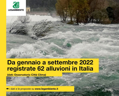 Secondo i dati della mappa del rischio climatico dell’Osservatorio Città Clima Legambiente, «L’alluvione che ha colpito le Marche è l’ennesimo campanello d’allarme che il Pianeta ci sta inviando. Con la crisi climatica non si scherza, servono interventi non più rimandabili. Da gennaio a settembre 2022 l’Italia è stata colpita, senza considerare il prossimo autunno che aggraverà ulteriormente il bilancio, già da 62 alluvioni (inclusi allagamenti da piogge intense) contro le 88 del 2021. Preoccupante anche il dato complessivo degli ultimi anni: dal 2010 ad oggi (settembre 2022) nella Penisola si sono registrate 510 alluvioni(e allagamenti da piogge intense che hanno provocato danni), di cui – se ci spostiamo nel Centro Italia – 57 nel Lazio, 36 in Toscana, 26 nelle Marche e 6 in Umbria».