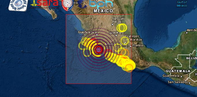 Una fortissima scossa di terremoto di Mw 7.6 è stata registrata alle 03:47:47 ora italiana in Messico, nella zona di Aquila, in Messico, nella regione di Micoachàn con ipocentro a circa 15 km di profondità.