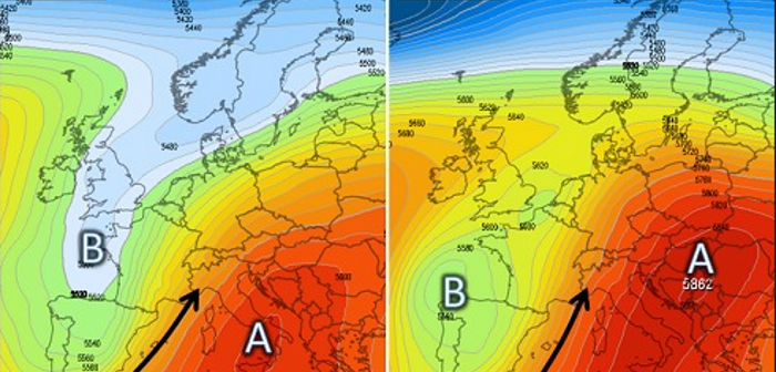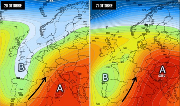 Abbiamo detto che l’evoluzione meteorologica della prossima settimana sarà caratterizzata dall’espansione di un promontorio di matrice nord africana che sarà sollecitato a salire di latitudine verso il Mediterraneo e l’Europa centrale dalla discesa verso le Isole Azzorre di una saccatura ricolma di aria fredda di origine nord atlantica. Si tratta in generale di una dinamica che incentiva lo scambio di calore lungo i meridiani e che quindi va a costruire due tipi opposti di tempo: mite e stabile dove agisce il campo anticiclonico e fresco e piovoso dove invece è in piena azione la saccatura.