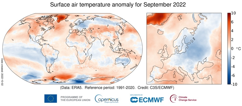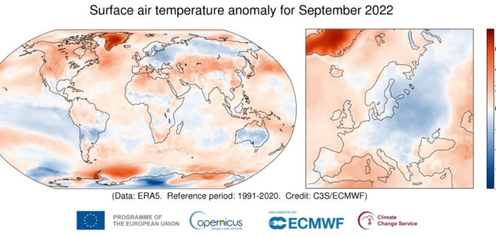Freja Vamborg, senior scientist del Servizio per il cambiamento Climatico del C3S. ha cioncluso: «Dopo un’estate estrema con temperature da record, siccità e incendi in gran parte dei territori europei, il mese di settembre è stato caratterizzato da temperature inferiori alla media in Europa. A livello globale, secondo i dati rilevati da Copernicus, è stato comunque uno dei mesi di settembre più caldi. La Groenlandia è stata insolitamente calda: la maggior parte del territorio ha sperimentato il settembre più caldo mai registrato dal 1979».