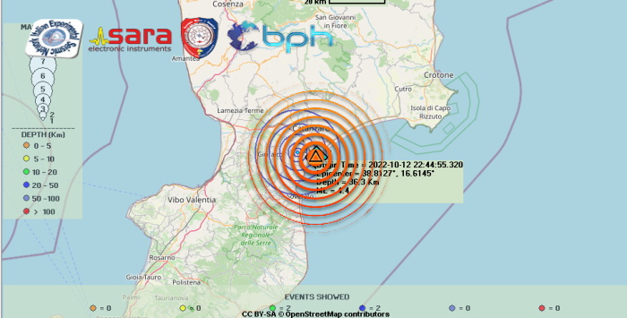 SCOSSA DI TERREMOTO DI Ml 4.4 SULLA COSTA CATANZARESE IN CALABRIA