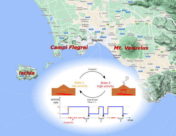 Analizzando la frequenza temporale delle eruzioni nelle fasi di alta e bassa attività dei vulcani dell’area napoletana, i ricercatori hanno messo a punto un unico modello statistico di valutazione del loro comportamento e del loro potenziale eruttivo