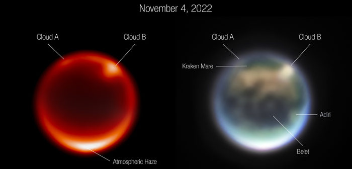 Dal telescopio Webb le meravigliose immagini delle nubi su Titano