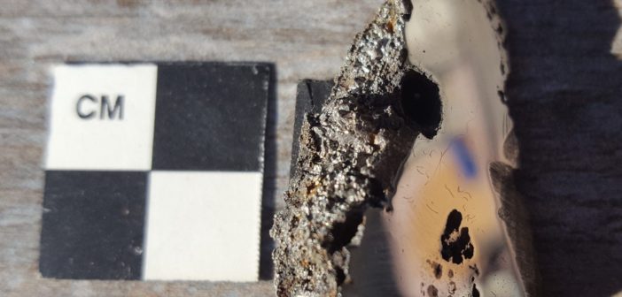Una fetta del meteorite di El Ali, ospitata nella collezione di meteoriti dell’Università dell’Alberta, contiene due minerali mai visti prima sulla Terra. Crediti: Università dell’Alberta