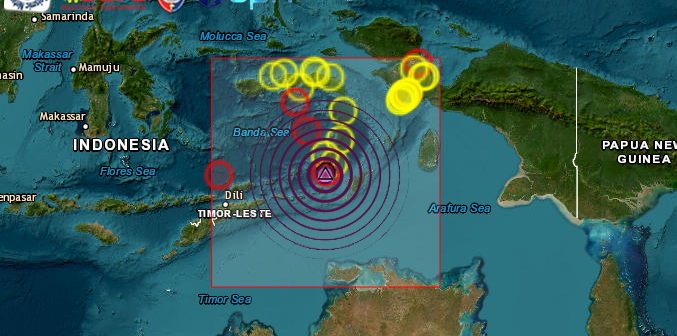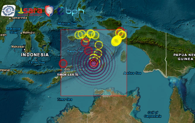 FORTISSIMA SCOSSA DI TERREMOTO DI Mw 7.6 NEL MARE DI BANDA IN INDONESIA