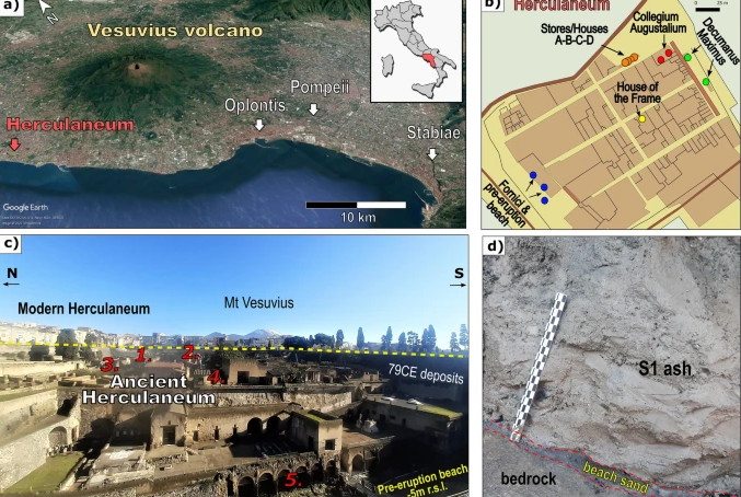 Lo studio dimostra che nel 79 d.C. una prima nube di cenere (di brevissima durata) entrò in città a una temperatura iniziale di 500-600 gradi e raggiunse poi la spiaggia ancora a più di 500 gradi, causando la morte istantanea di tutte le persone rifugiatesi negli edifici in città e negli ambienti sul mare. L’interazione tra la nube di cenere bollente e l’acqua di mare provocò il rigonfiamento della nube e la deposizione di ceneri raffreddate subito dopo, che avvolsero i corpi delle persone già morte a causa del calore estremo. I successivi flussi piroclastici, a temperature relativamente più basse, seppellirono progressivamente la città.