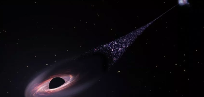 Un buco nero supermassiccio con una massa fino a 20 milioni di volte quella del Sole è stato espulso dalla sua galassia, trascinando con sé una scia di stelle lunga 200.000 anni luce