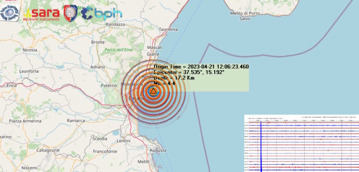 Una scossa di terremoto di Ml 4.4 è avvenuta alle ore 14:06:23 italiane nei pressi della costa Catanese, con ipocentro in mare alla profondità di 17,2 km. I comuni più vicini all’epicentro sono stati