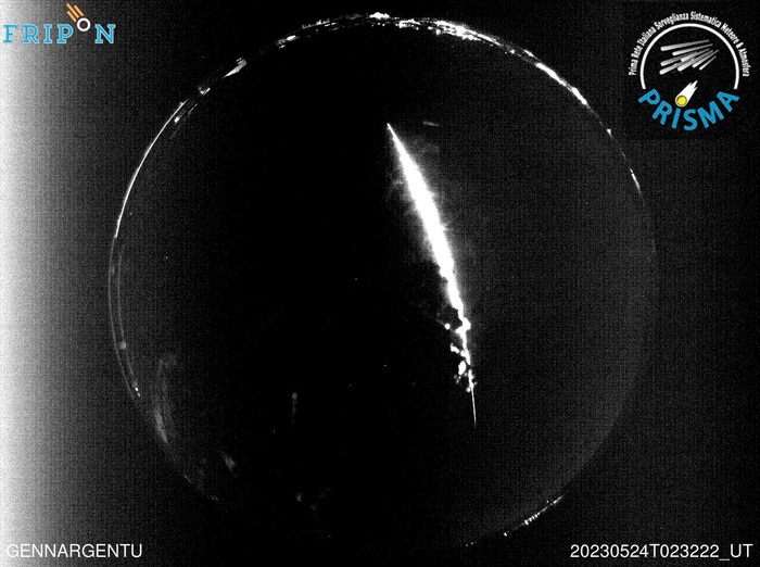 Il secondo bolide è stato ripreso dalle due camere Prisma della Sardegna, Sardinia Radio Telescope e Gennargentu, più una camera Fripon dalla Corsica. “L’immagine ripresa dalla camera del Gennargentu è veramente spettacolare e mostra la scia del fireball che attraversa tutto il cielo passando quasi allo zenit”, sottolineano gli esperti. Il bolide è stato ripreso a partire dagli 85 chilometri di altezza, quando aveva una velocità di circa 20,5 chilometri al secondo, e si è estinto a 44 chilometri con una velocità di 16 chilometri al secondo, con una durata di quasi 8 secondi. Data l’alta velocità finale, tutto il meteoroide è andato distrutto nella fase di rientro. Proiettando la traiettoria al suolo, si è mosso da nord-est verso sud-ovest, con punto iniziale sul Mare Tirreno e punto finale vicino a Villanova Tulo, nel Sarcidano.