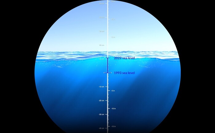 L’innalzamento del livello dei mari fra il 1993 e il 2022 (fonte: NASA’s Scientific Visualization Studio)