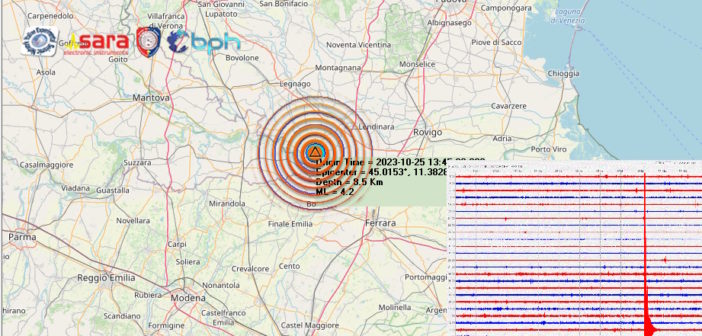 Una scossa di terremoto di magnitudo (Ml) 4.2 è stata registrata alle ore 15:45:36 nella Pianura Padana Emiliano-Venet , tra le province di Rovigo e Ferrara, con epicentro nel comune di Cineselli (RO)e ipocentro alla profondità di 8,5 km.