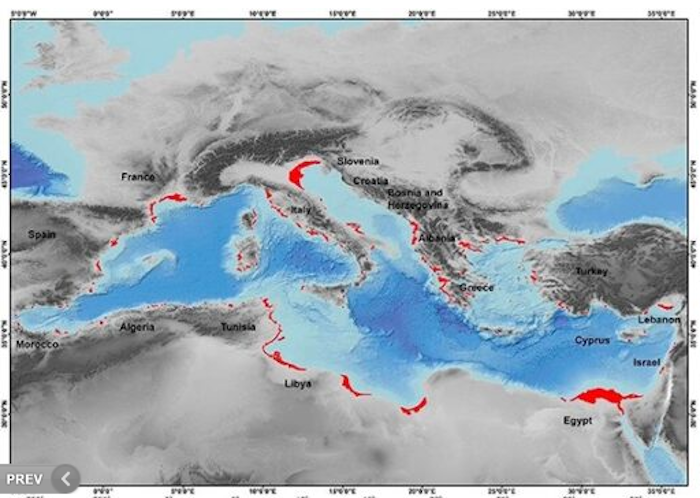 Circa 38.500 kmq di coste del Mediterraneo saranno presto più esposte al rischio di inondazione