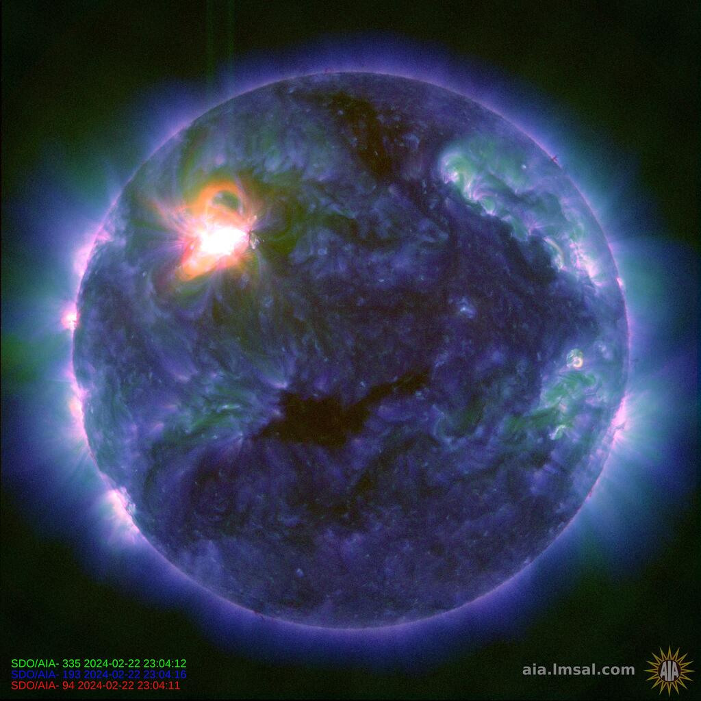 L’episodio non è stato l’unico: tra il 21 e il 22 febbraio, nell’arco di 23 ore, si sono verificati anche altri due brillamenti, di classe X1.8 e X1.7, sempre provenienti dalla stessa gigantesca macchia solare, indicata con la sigla AR3590.
