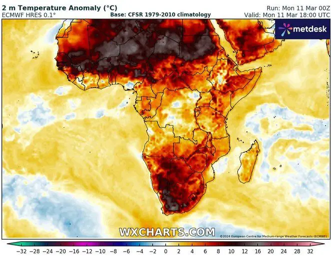 La notizia è di quelle che preoccupano: condizioni meteo di caldo estremo in Africa. Lo scorso 11 Marzo è stata una giornata storica per il Continente Nero, con migliaia di record battuti e talvolta addirittura stracciati in molti paesi africani. Cosa sta accadendo: ricordiamo che in questo periodo dell’anno il sole comincia a raggiungere lo zenit, ovvero i raggi risultano perpendicolari sull’orizzonte durante le ore più calde del giorno, fra la zona dell’Equatore e il Sahel. A differenza di quello che accade alle medie latitudini, il periodo più caldo dell’anno è proprio questo.