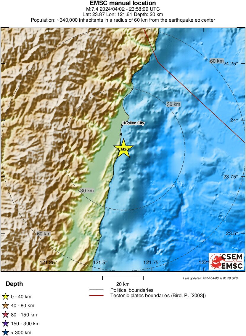 FORTISSIMA SCOSSA DI TERREMOTO DI Mw 7.4 ALL’ISOLA DI TAIWAN
