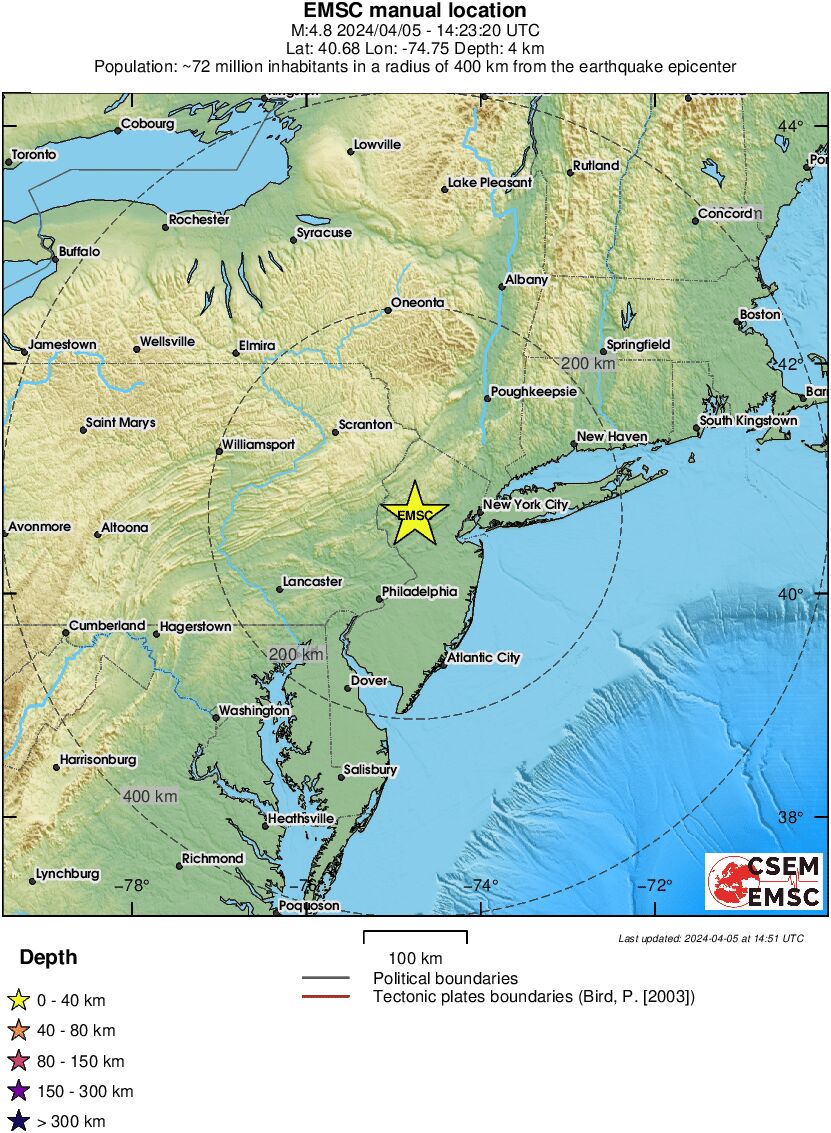 SCOSSA DI TERREMOTO DI Mw 4.8 NELLA ZONA DEL NEW JERSEY NEGLI USA