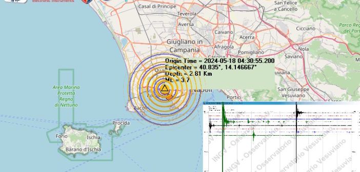 Un terremoto di magnitudo (MD) 3.7 è avvenuto alle ore 06:30:55 ed è stato localizzato nella zona dei Campi Flegrei, nel comune di Pozzuoli (NA) in Campania, con ipocentro alla profondità di soli 2.8 km.