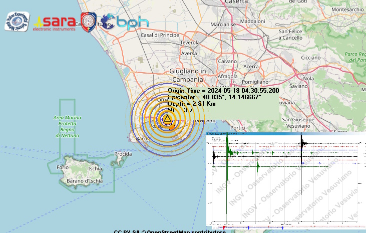 Epicentro localizzato nella zona a ridosso della solfatara, nel comune di Pozzuoli (NA). Ipocentro molto superficiale, evento avvertito in maniera forte dalla popolazione in tutta la provincia di Napoli.