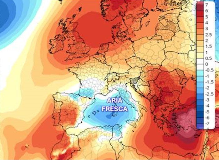 Entrerà quindi aria relativamente più fresca dai quadranti nord-occidentali che riporterà le temperature su valori più consoni alle nostre latitudini e che rinnoverà anche le condizioni di instabilità atmosferica, dal momento che la circolazione dell’aria alle quote superiori sarà governata da una figura di bassa pressione che assumerà la forma di una goccia fredda. Con buona probabilità, il raggio d’azione di questa circolazione ciclonica non sarà sufficientemente ampio da inglobare appieno nella fenomenologia anche le regioni meridionali che dovrebbero purtroppo restare ai margini e quindi avere meno occasioni per ricevere precipitazioni, qui attese come una benedizione visto il perdurare di una situazione siccitosa: in particolare, sarà probabilmente l’area ionica a trovarsi più lontana da questo coinvolgimento.