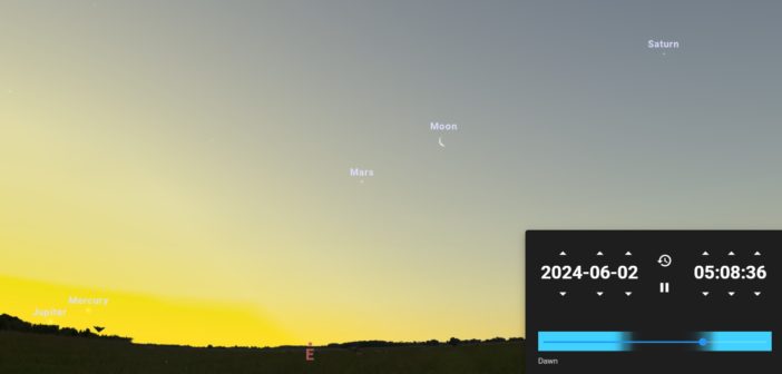 In sostanza, tutti i pianeti sono presenti alle prime luci dell’alba, ma solo Saturno e Marte si potranno osservare facilmente. Il 3 giugno a fare compagnia a Marte arriverà la falce di Luna calante.